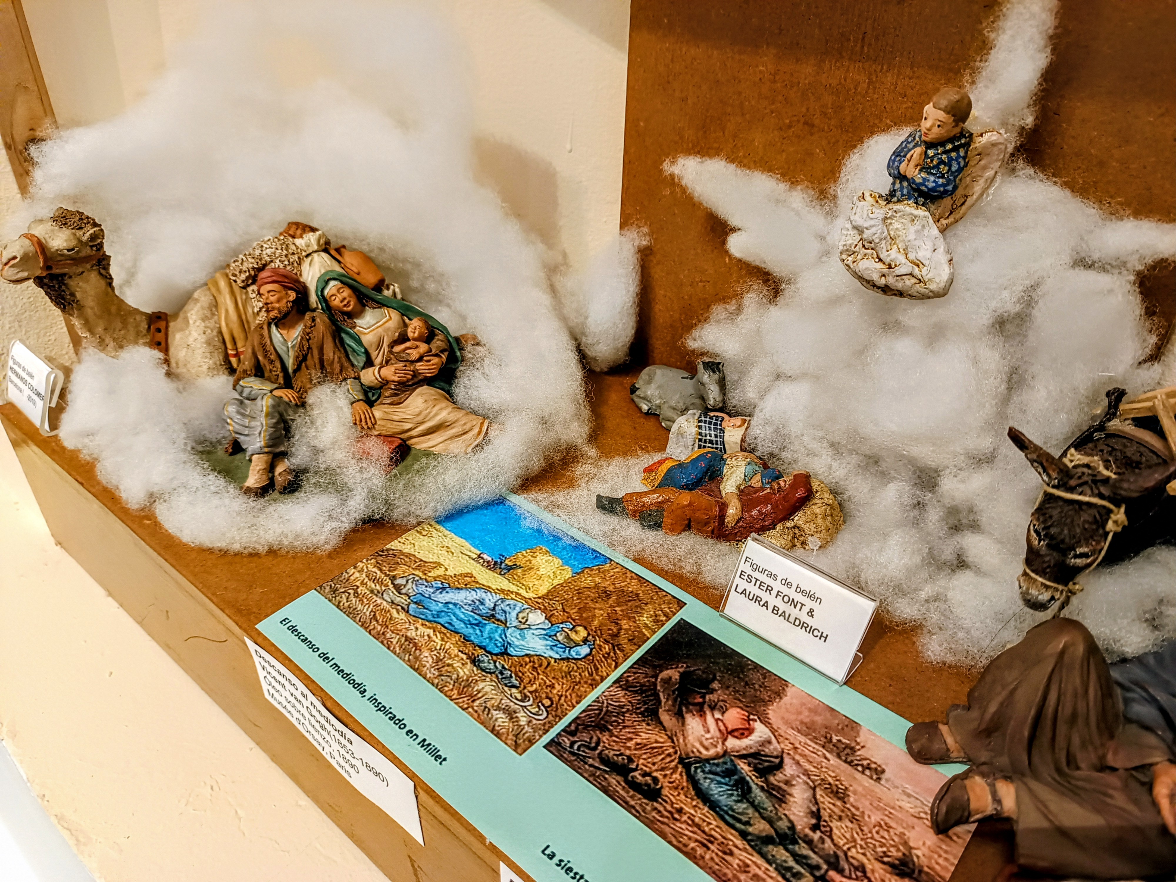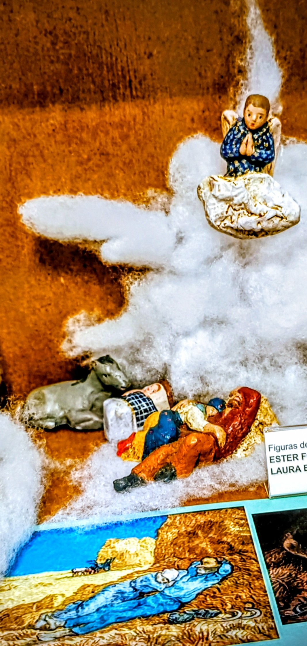 Gracias a amigos como Gustavo y Javi, sus figuras parecen suspender el tiempo, prolongando aquella labor primera: fabricar huidas de fantasía, escenas originales que abren caminos nuevos, inesperados pero plenamente coherentes con el hilo conductor de este año —huida, descanso, nacimiento—, entrelazando tiempo y espacio como quien teje una misma historia desde distintos pliegues.
