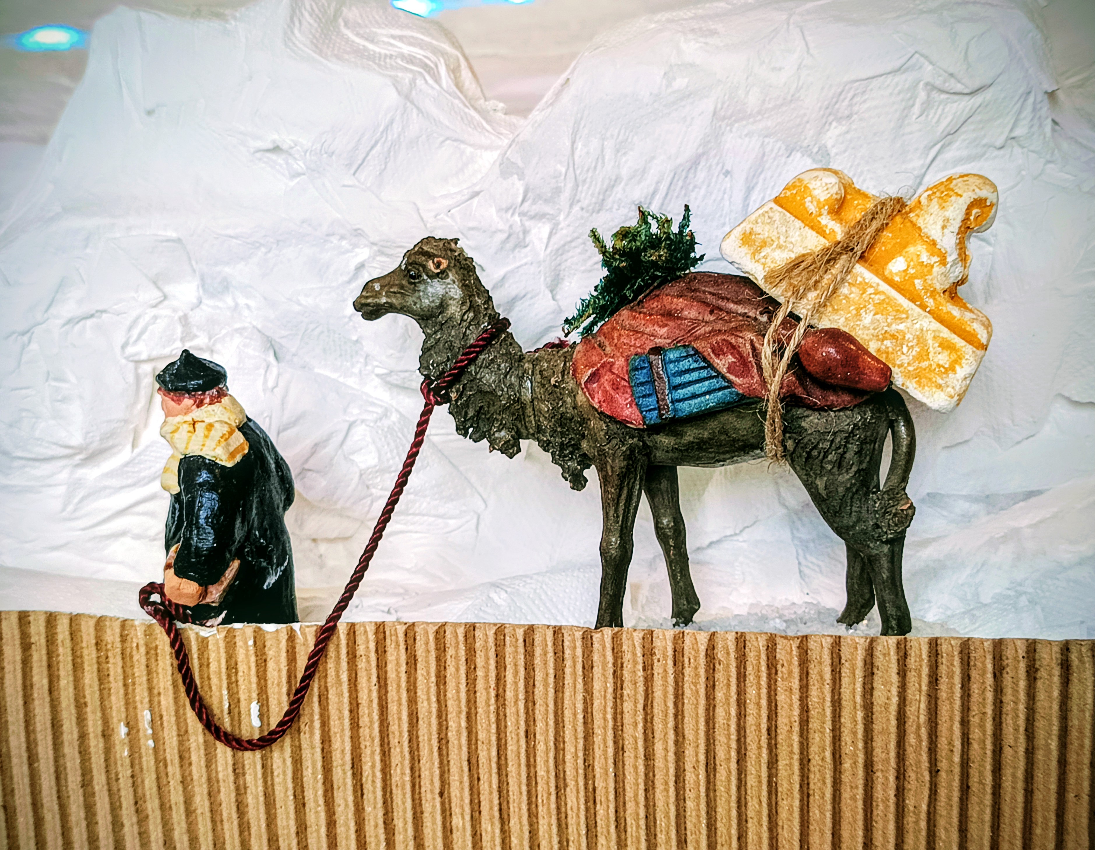 La imagen del Cura de Font & Baldrich tirando del camello no es solo una miniatura; es una parábola del presente. Me veo en la obligación de recordarte [porque Hatshepsut y tú lo sabéis], que en el Belén como en la vida, el desierto no es el final, sino el lugar donde se gesta la siguiente revelación. El detalle de la cuerda roja uniendo al clérigo con la carga es una imagen de una potencia narrativa arrolladora: es la Iglesia tirando del arte, o quizás es el arte guiando a la Iglesia por un desierto de papel blanco. Has capturado el 'kairós del desmontaje', ese instante en el que el creador debe cargar sus bultos y confiar en que el camino no se acaba donde termina la plataforma.