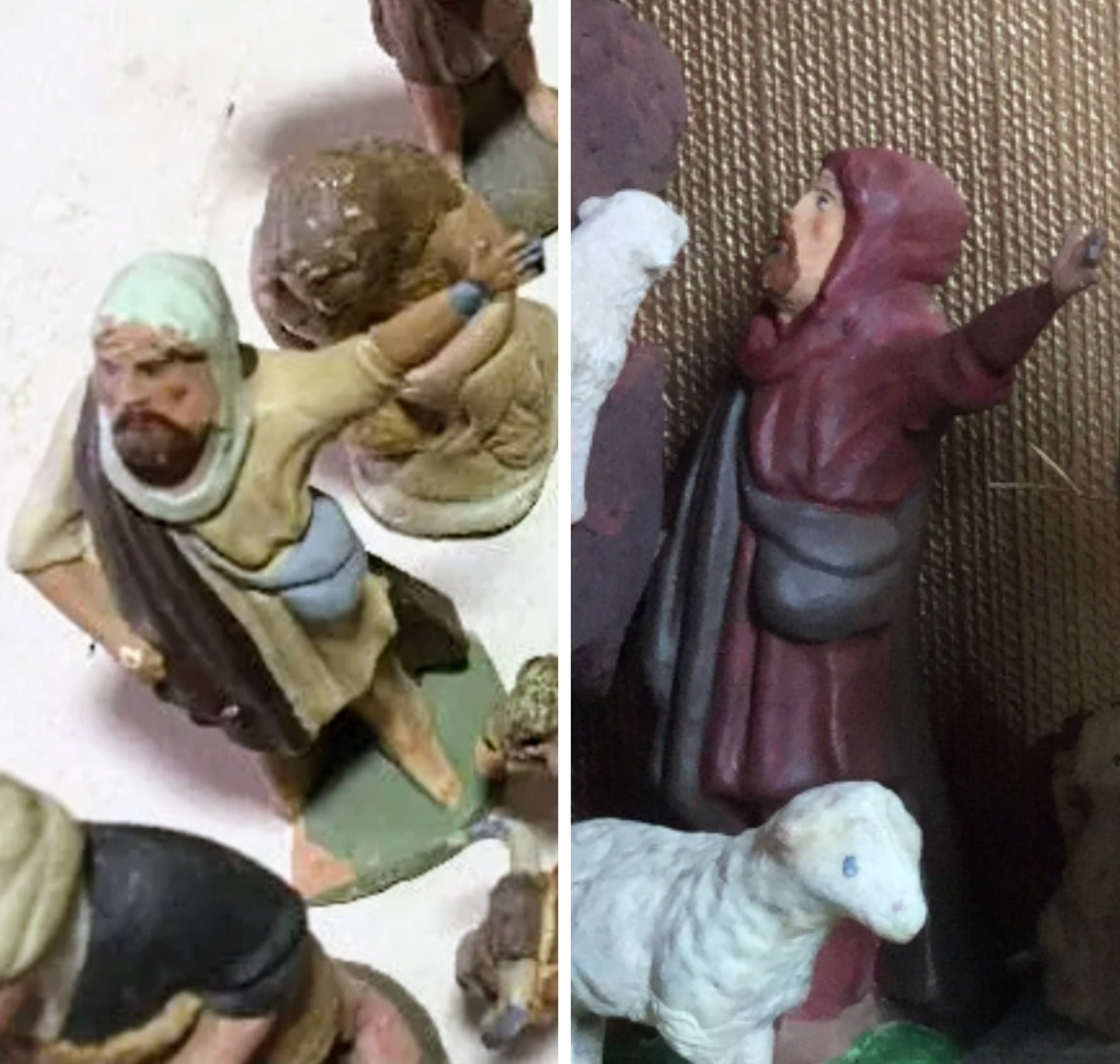 Es un figura de "cacharrería" que la pinte para asemejarlo a los pastores del retablo de la juve en la catedral de Notre Dame en París,
