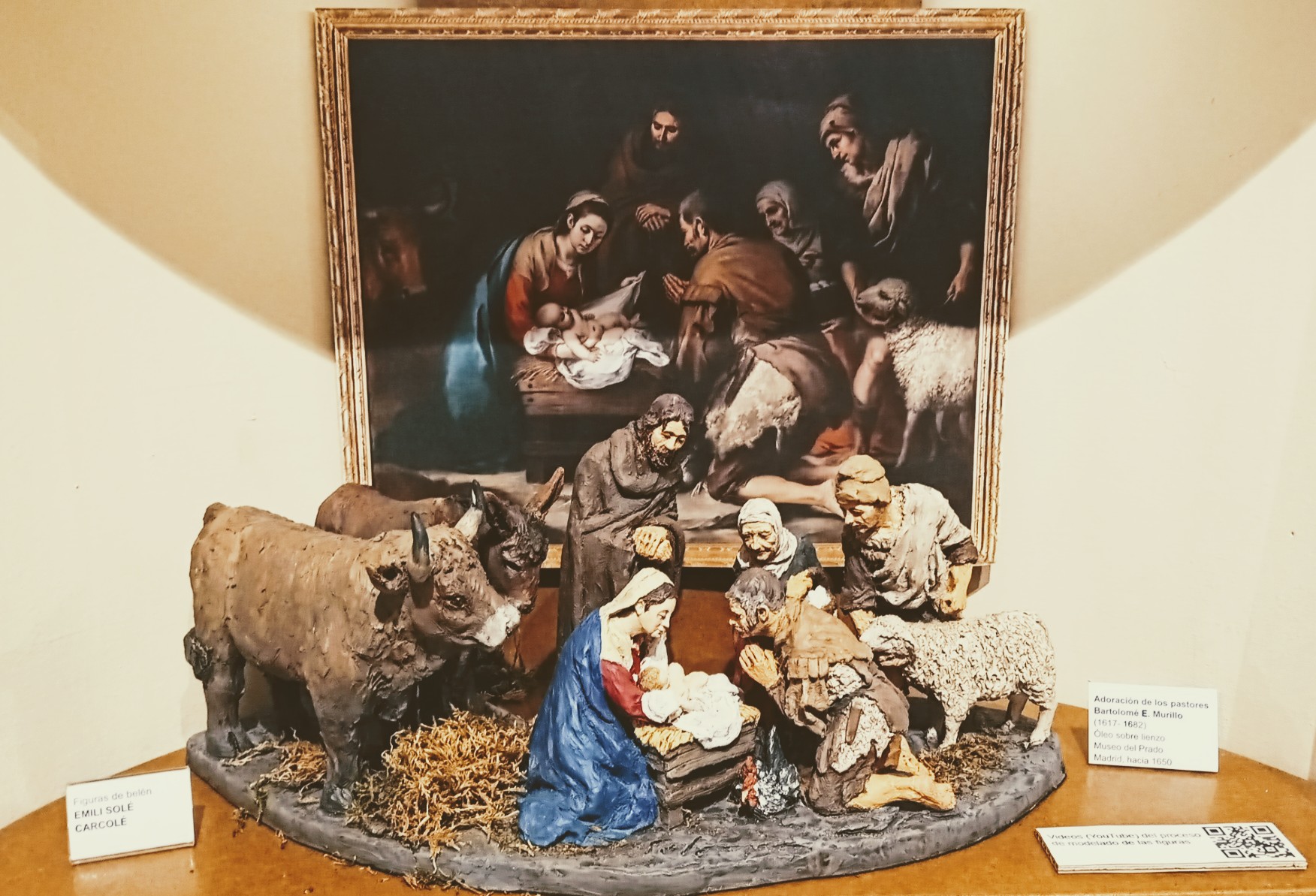 Pasamos a las naves laterales en donde en las hornacinas se distribuyen pequeños montajes belenísticos que relacionan dos hilos del Foro "Influencias artísticas de los artesanos figuristas del Belén" y "Nuevos lenguajes belenistas" en pares por hueco (ocho en total) y con textos explicativos subidos del blog como hilo conductor el Arte y la Navidad.