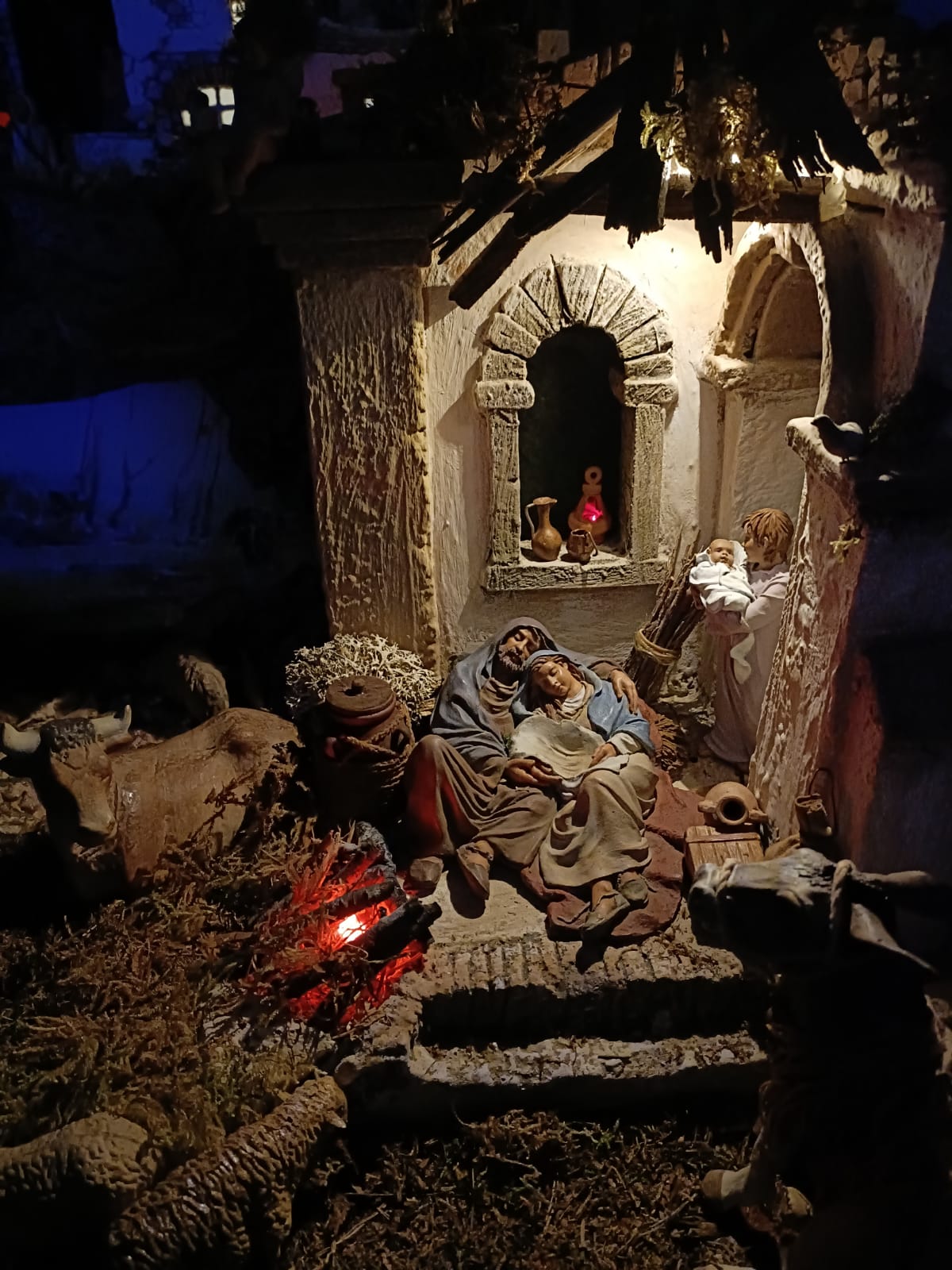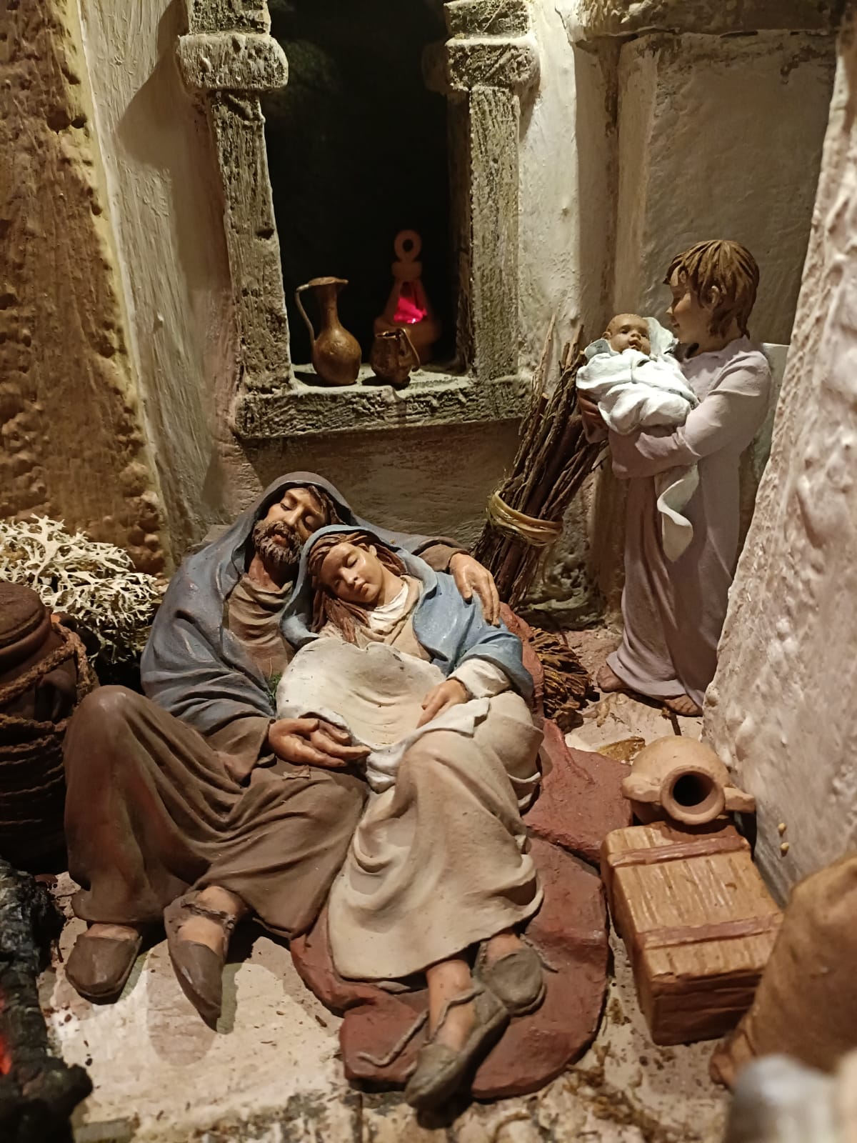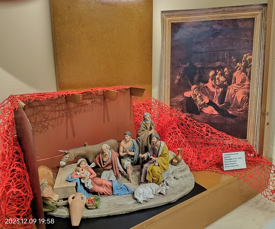 Son 'tres representaciones en una', la de M.Ribes complementada con el buey, la mula y la cuna, 'la pesebrista'(la representación dentro de la representación) con las cajas donde se guardan las figuritas y 'la proyectada' con la luz del Sagrario, casi la que mas me gusta, la sencillez pura con sólo la silueta de la sombra, donde aparece hasta el portal-casa...