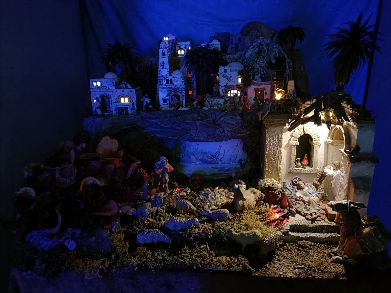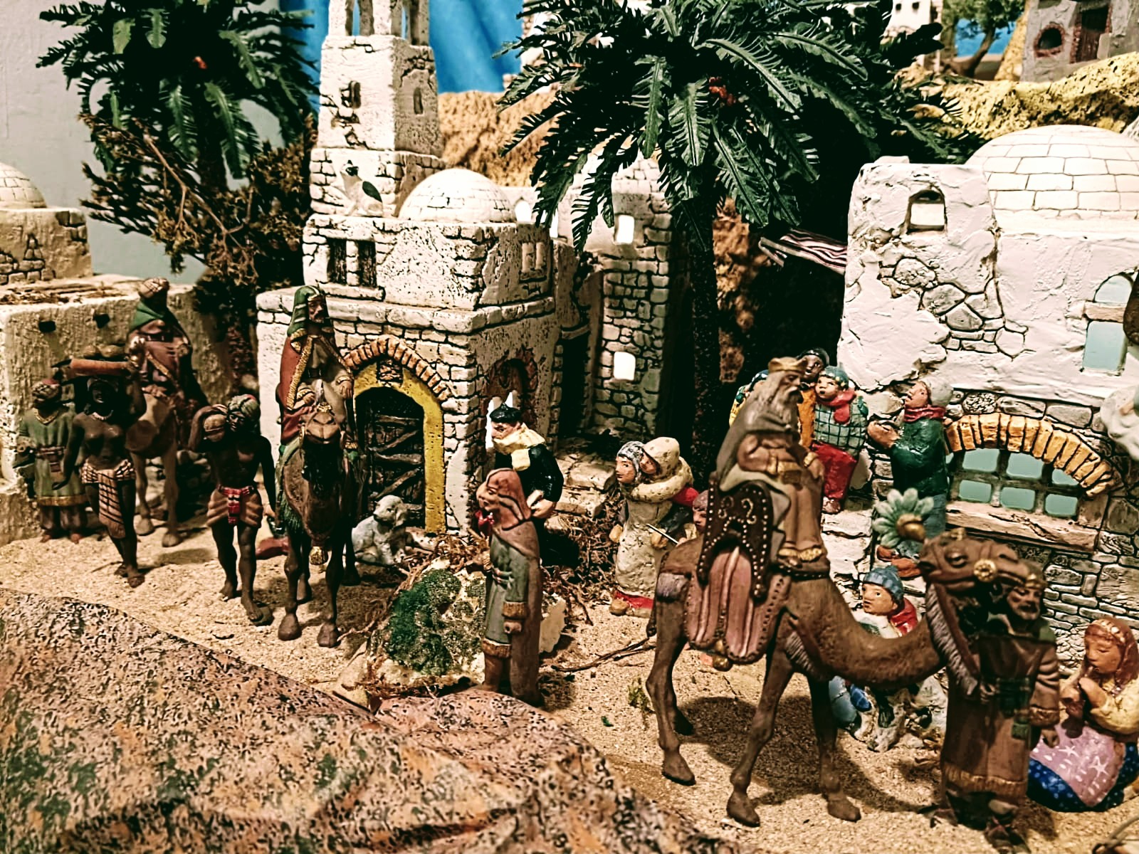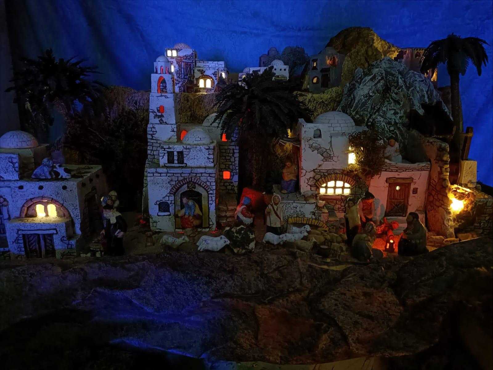 Son 'tres representaciones en una', la de M.Ribes complementada con el buey, la mula y la cuna, 'la pesebrista'(la representación dentro de la representación) con las cajas donde se guardan las figuritas y 'la proyectada' con la luz del Sagrario, casi la que mas me gusta, la sencillez pura con sólo la silueta de la sombra, donde aparece hasta el portal-casa...