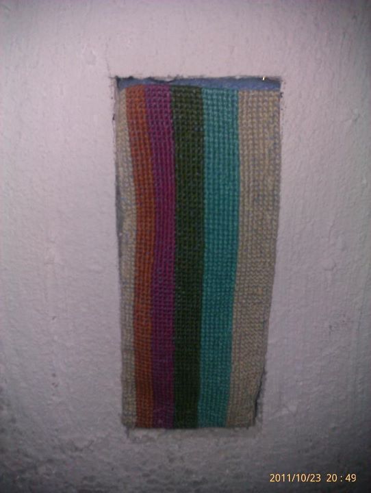 tambien os enseño un detalle de la cortina de la puerta echa en punto de cruz, una idea que cogí prestada de una forera que no recuerdo el nombre, perdón.