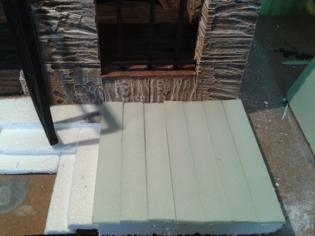 esta vez estoy liada con los exteriores....suelo de baldosas y una entrada con escaleras y una rampa por donde poder bajar los toneles o barriles.Besos para tod@s