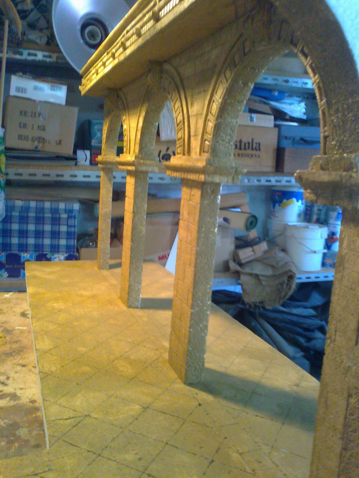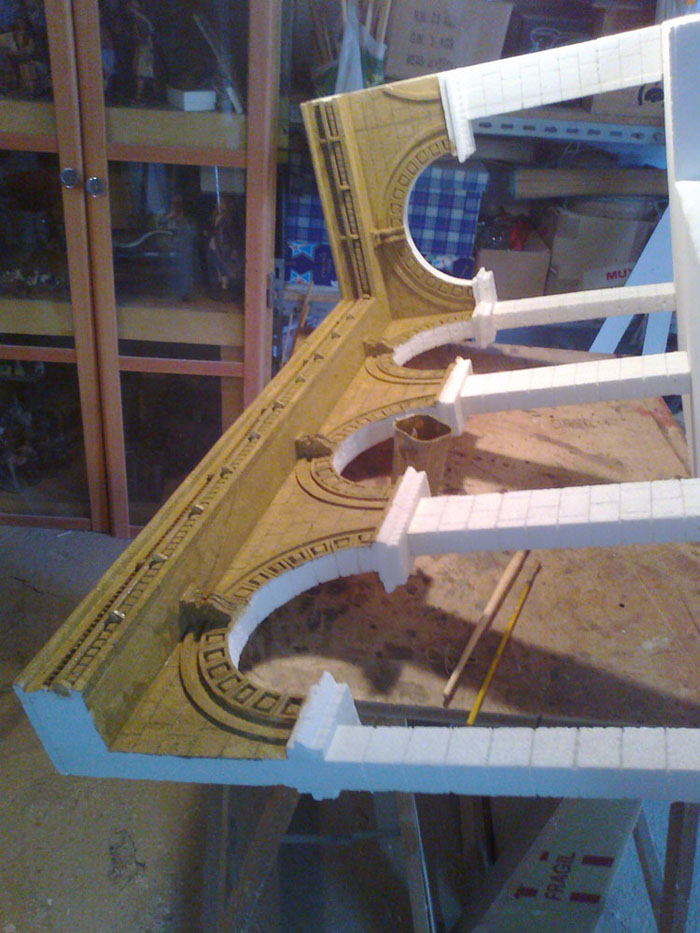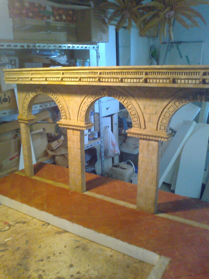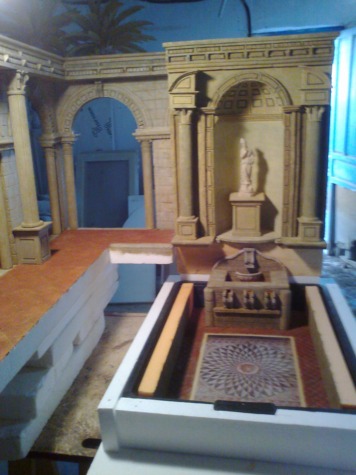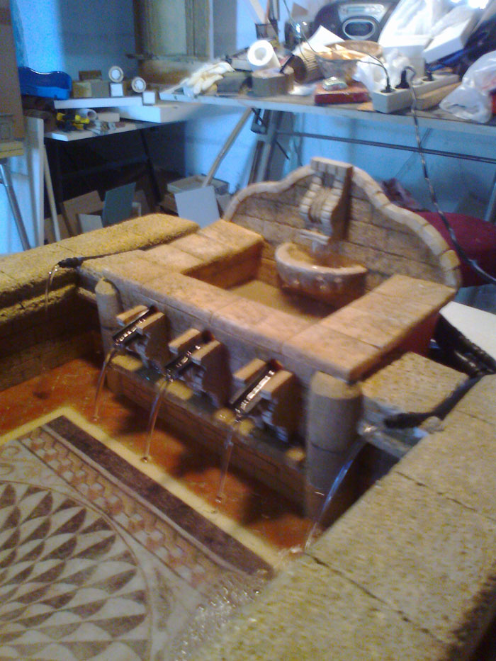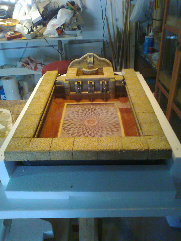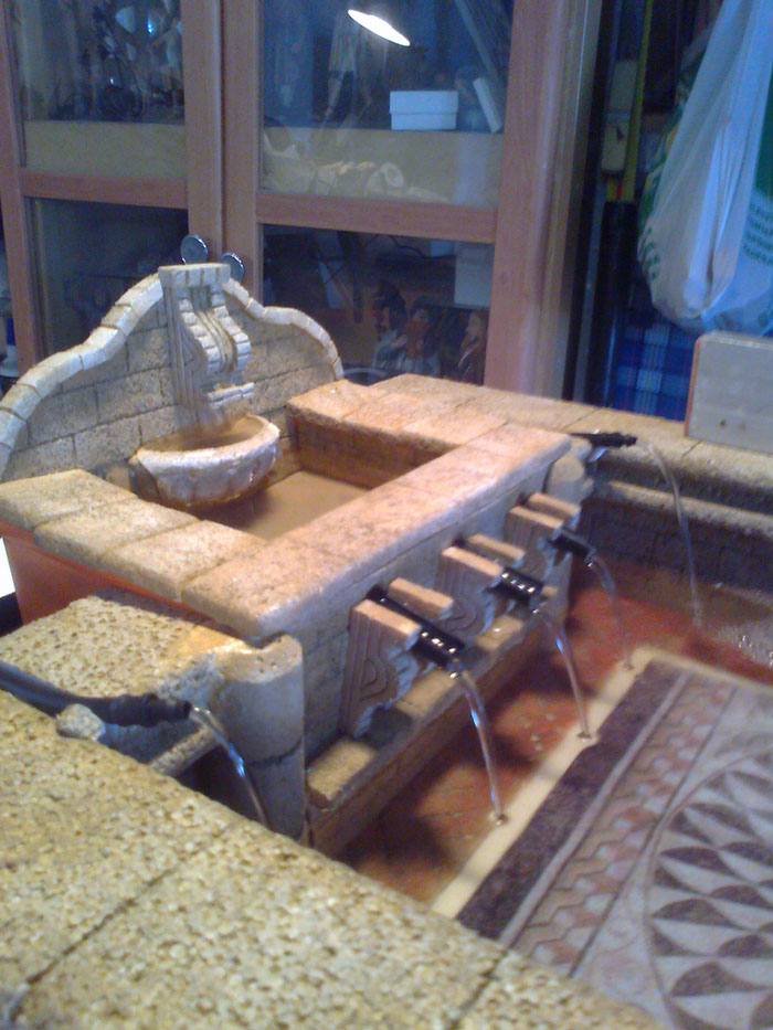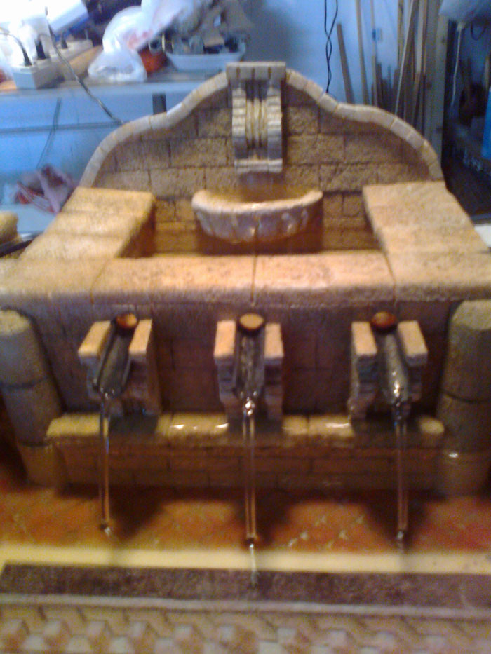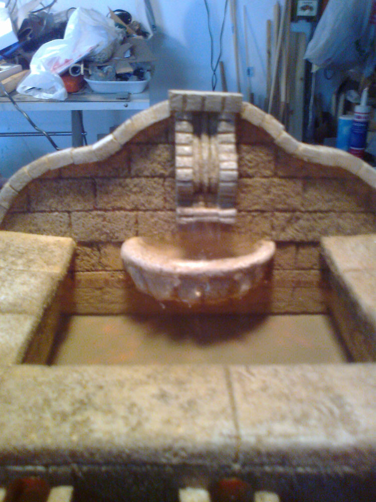 Aqui os subo lo siguiente, con una estropajera comprada en los chinos he hecho la fuente que estará inmersa delante de la contrucción que estoy haciendo, espero que os guste, un saludo desde Elche..
