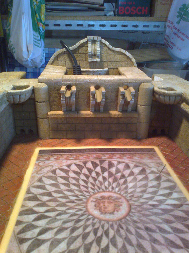 Hola Johan, espectacular la fuente ya con la prueba del agua, da igual que dejes tres o cinco caños, de cualquier manera a mi me gusta, lo importante es que no estropee ese suelo fantástico que has hecho para ella, se ve precioso, pero supongo que ese detalle lo tendrás solventado.