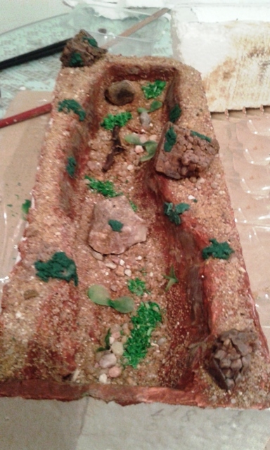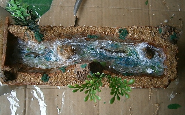 El efecto es muy bonito. Claro depende de las dimensiones de tu belén pero, ya que queda muy chulo, yo lo haría de un curso más largo, no una sección tan pequeña, así seguro que queda más realista. Lo único que creo que no está bien, desde mi humilde opinión, son las piedras grandes de los lados, que se notan las bolitas del porex. Yo intentaría tallarlas un poquito o darles alguna masilla.