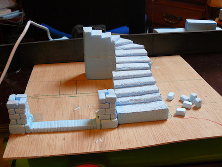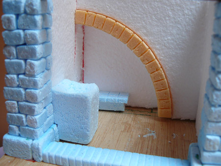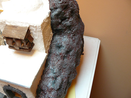 Luego he aplicado verde oscuro ocre+azul en los sitios que se supone que son mas sombreados y agujeros en las piedras.