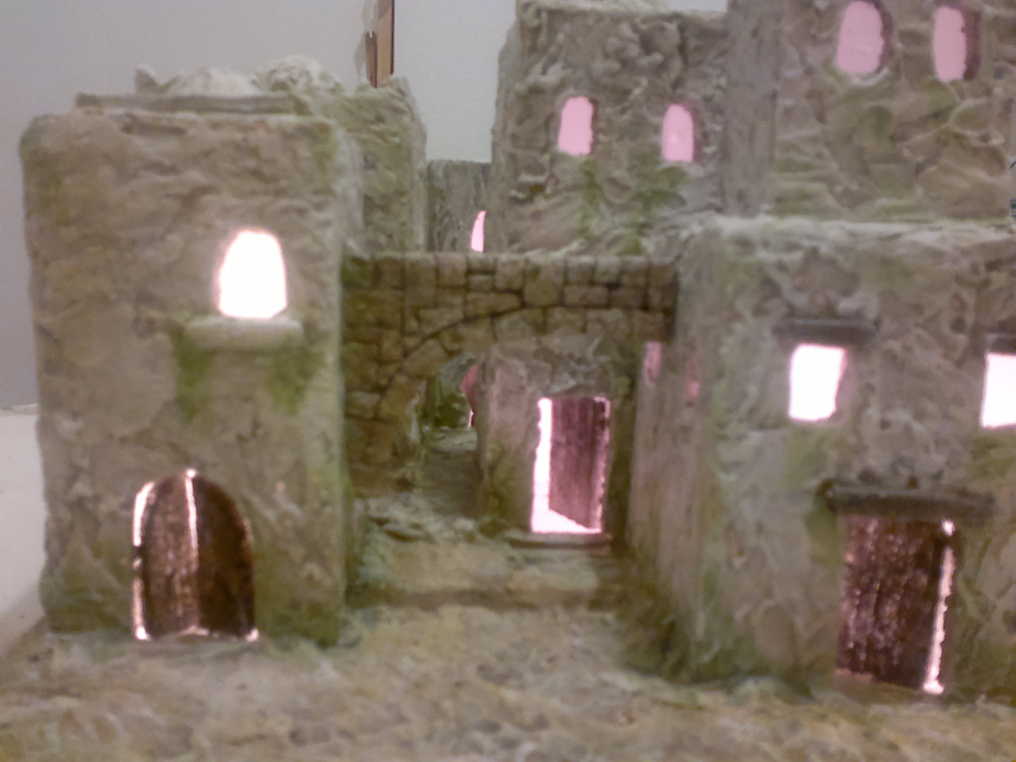 Incluso para casas de primer plano, se suelen ver en muchísimos belenes las paredes con demasiado relieve, que resultan muy poco reales.