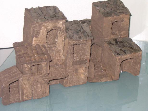 En principio habia hecho casas sueltas para hacer el pueblo en la lejanía,pero viendo fotos por acá y por allá pensé que estaría mejor haciendo un bloque y eso es lo que he hecho: