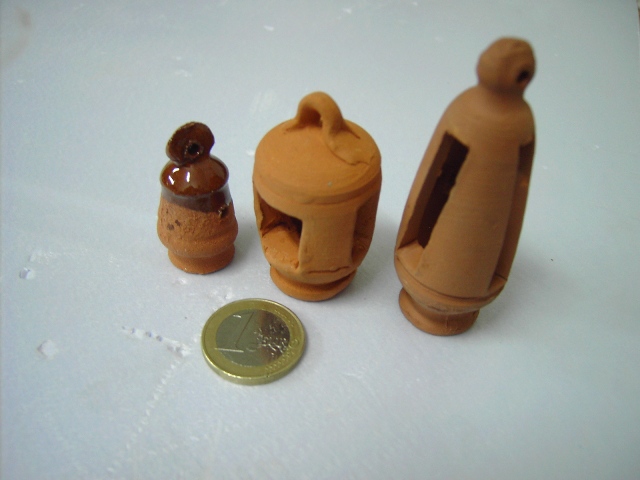 Como ya es mañana, jeje, intentaré improvisar como hago yo las antorchas. Solo pretendo que te des una ligera idea, pues indudablemente cada uno las puede mejorar todo lo que desee. Los materiales son todos muy básicos, para los farolillos he usado pasta DAS, pero también se puede usar escayola, yeso, arcilla, etc., una vez hecho y moldeado....solo tienes que pegarlo, para ello puedes utilizar colo blanca, en fin, si hay algo más que quieras saber a este respecto no tienes mas que decirlo.
