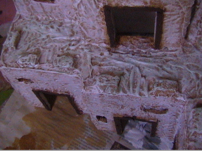 Pero la textura que has usado no es la más acertada, ya que las imperfecciones con las que habitualmente realizamos las paredes (que suelen dar resultados muy realistas en escenas de primer plano, muy cercanas), en el caso de lejanía, en la realidad, éstas no serían facilmente distingibles. Por tanto, quedarían mejor con menos relieve, más lisas.