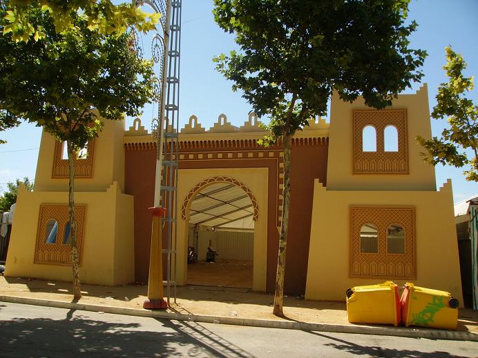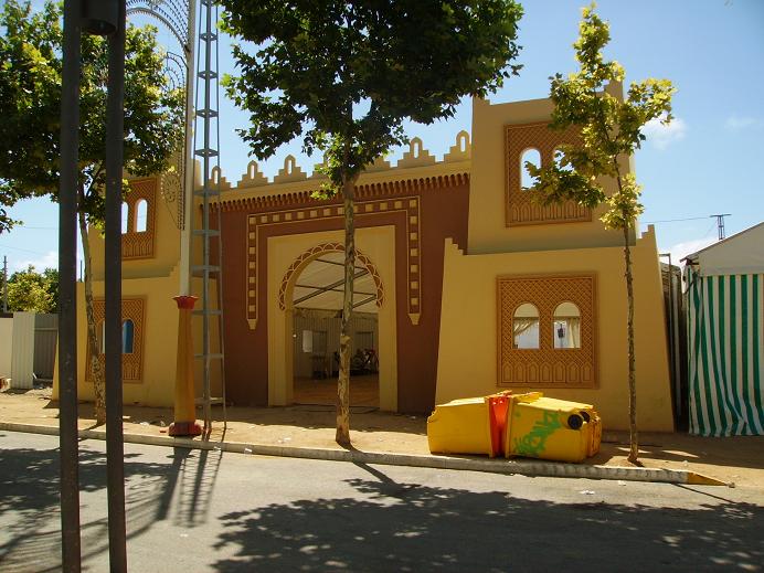 Esta es la portada de una de las casetas dee la feria de Puerto Real de este año. Concretamente es la de la peña "Tal como somos", y se ha llevado el primer premio en el concurso de portadas de casetas.