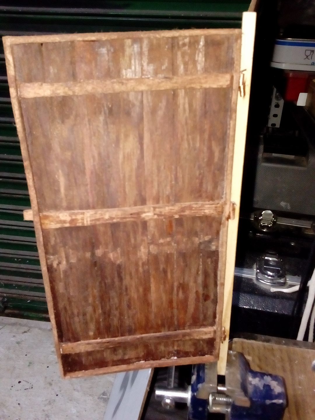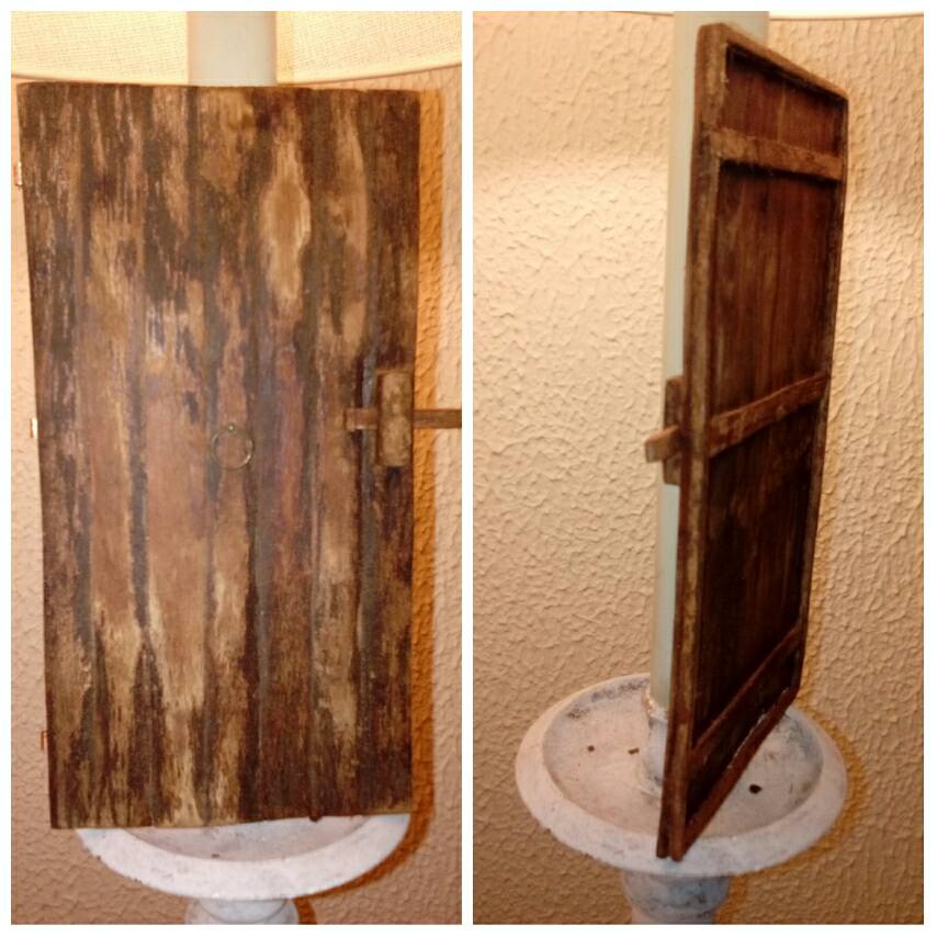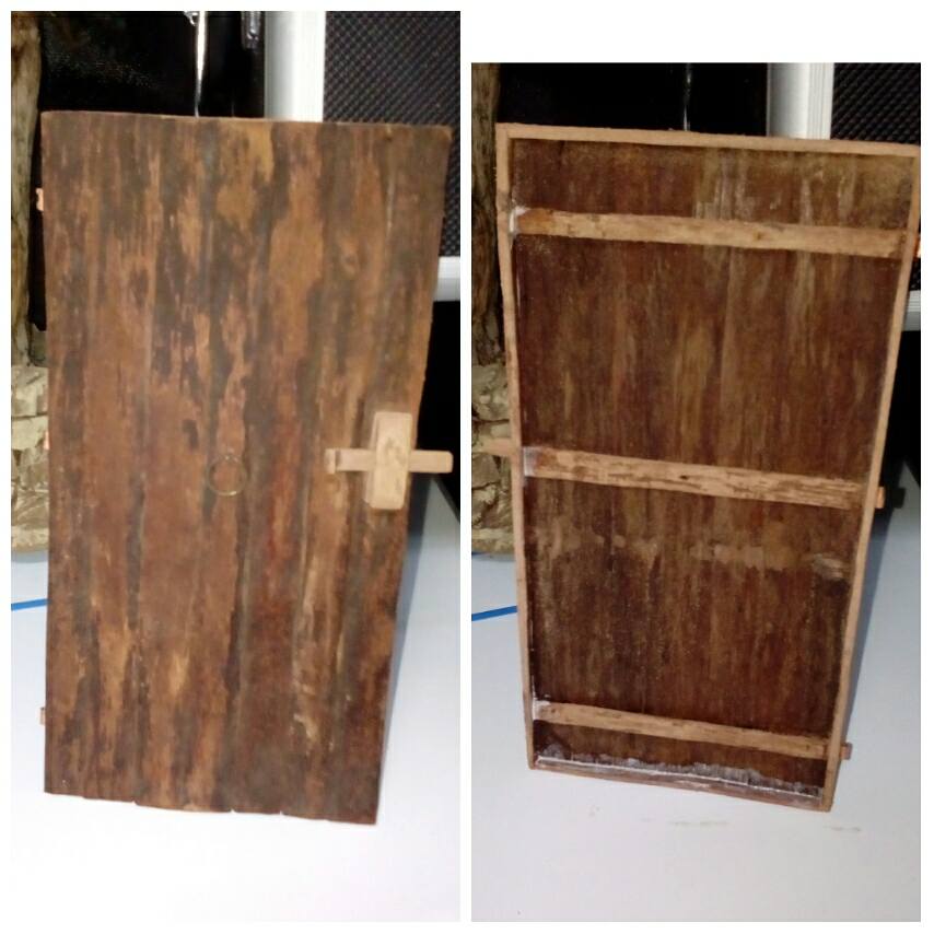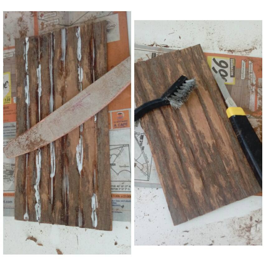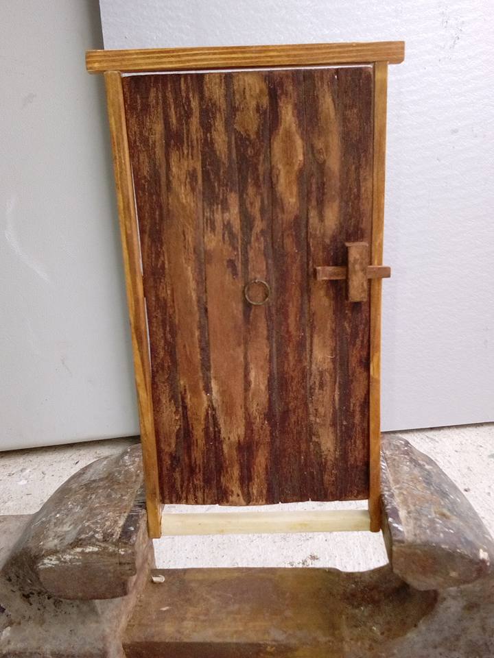 Para sustituir una puerta de poliestireno que se quemó con una bombilla durante el desmontaje de este año. Está realizada con corteza de eucalipto para figuras de 20 cm