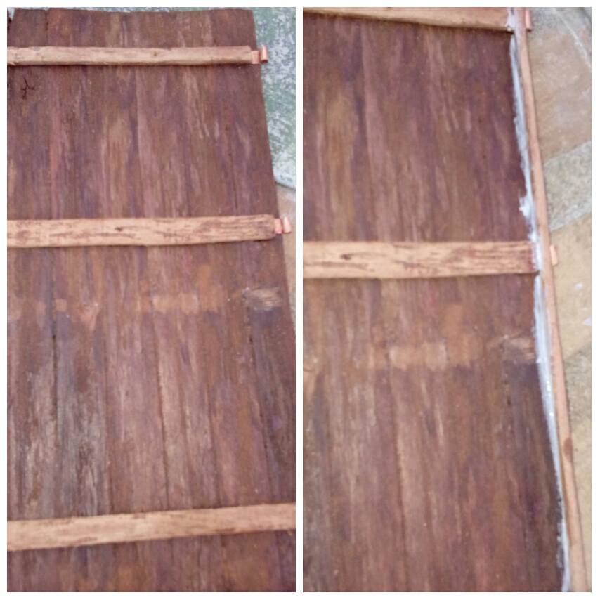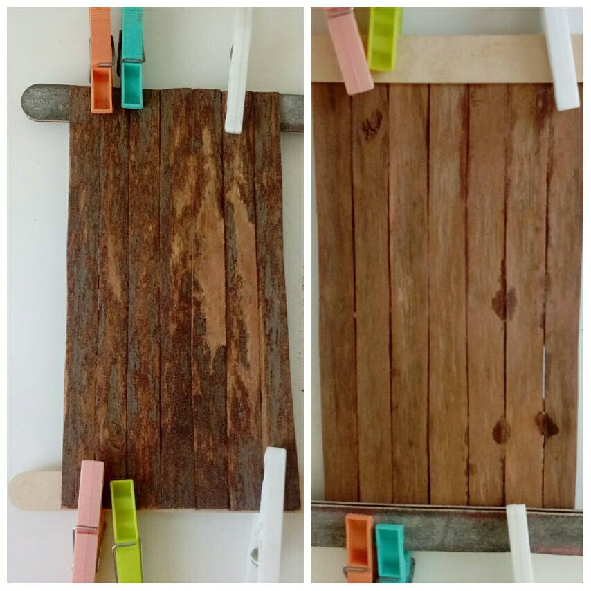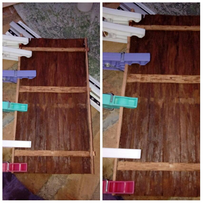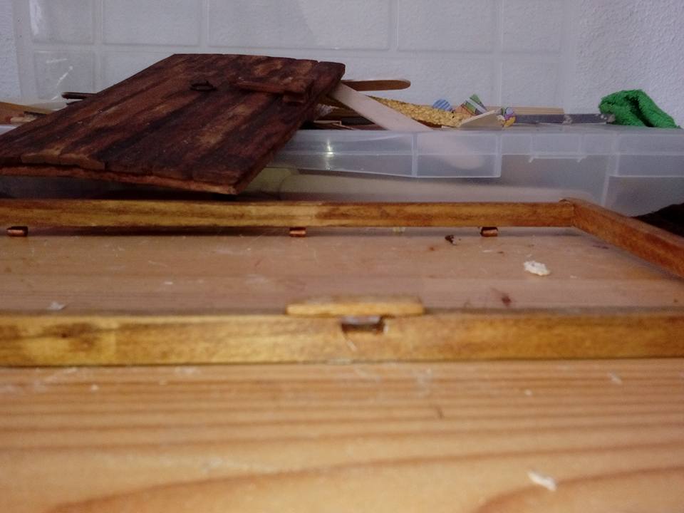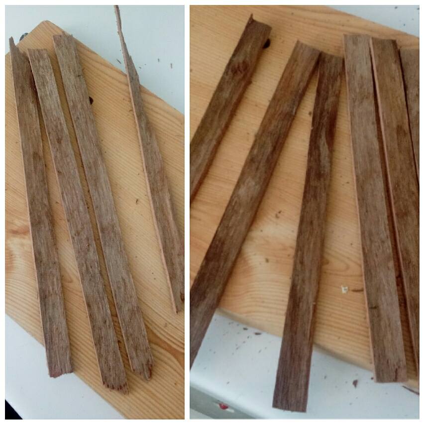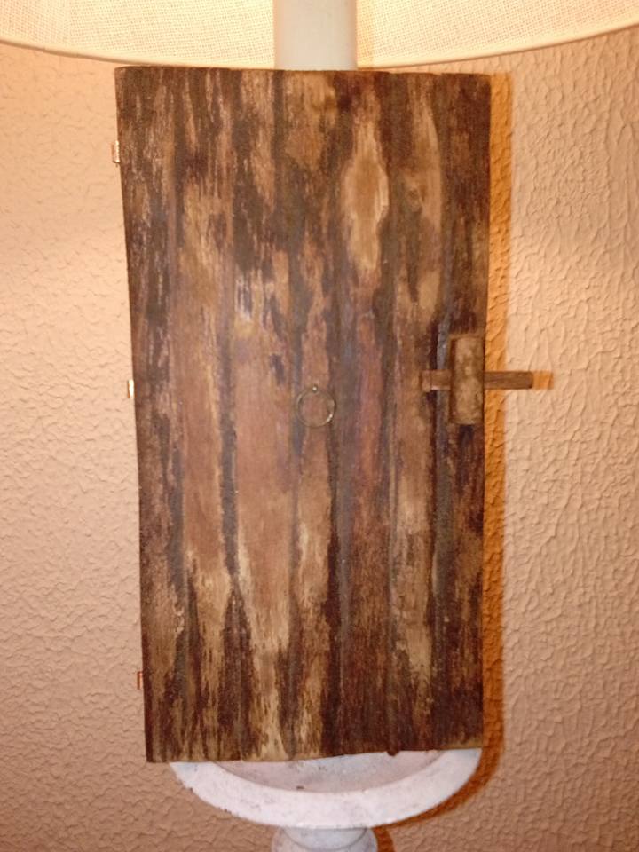 Para sustituir una puerta de poliestireno que se quemó con una bombilla durante el desmontaje de este año. Está realizada con corteza de eucalipto para figuras de 20 cm