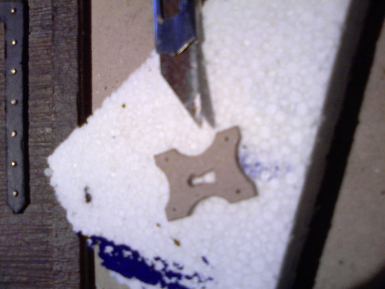 3º_ Escuadras de cartón, tintadas con tinte color miel para madera, resultado oxidado.