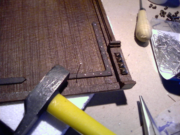 9º_ Con remaches hilera de clavos, perforar antes los agujeros para encastrarlos.