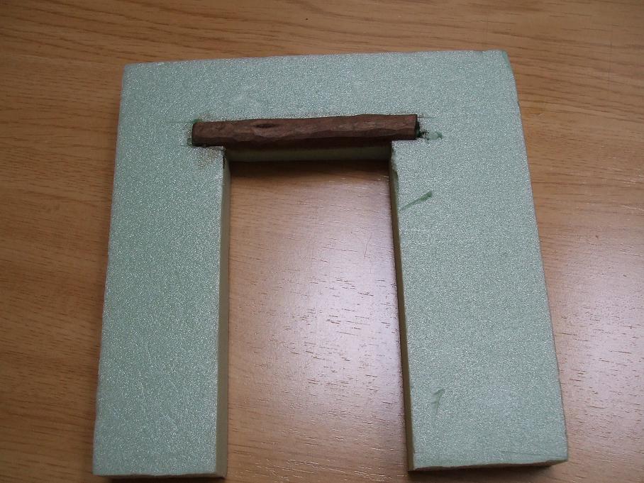 (0001 Hemos abierto el hueco y pegado el travesaaÃo. Rama podada de frutal, una vez pelada y teeÃida con nogalina..JPG)