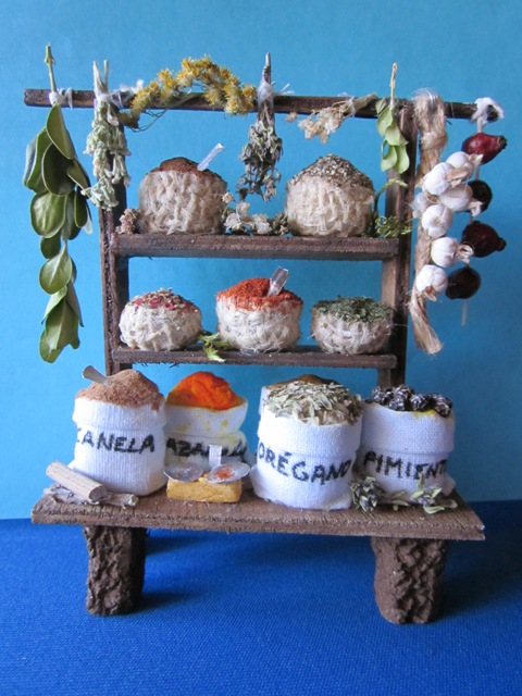 Hola, este es el puesto de especias que he hecho este año. Las especias son de verdad y está hecho con madera de contrachapado.