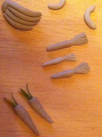 Me encantan la verdad...con que material has hecho las hojas de las zanahorias? porque yo estoy haciendo con pasta de modelar y las hojas no me salen...