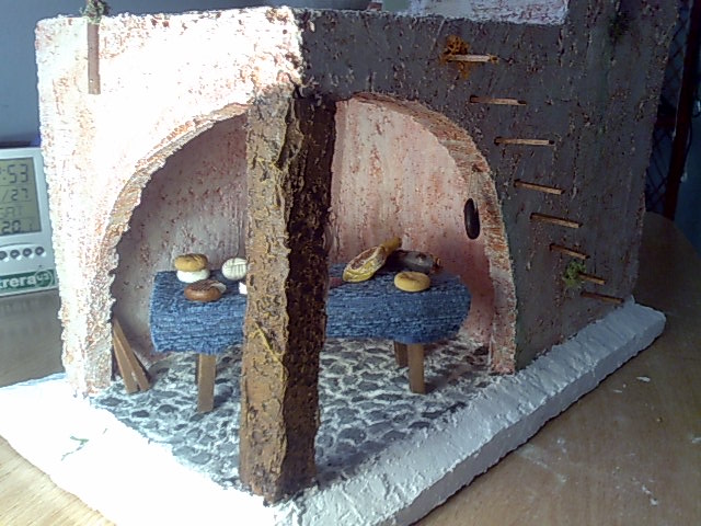 ¿Has pensado que lo mismo que te han dicho de la tela, también existen otros "porexpan" más duros y que son mejores, incluso para imitar la puerta? O utiliza las tablas de las cajas de frutas, fresas, etc... Tan solo tienes que cortar un trozo, pintarla y ya la tienes. Sigue por este camino que seguro que llegarás a conseguir el belén de tus sueños.
