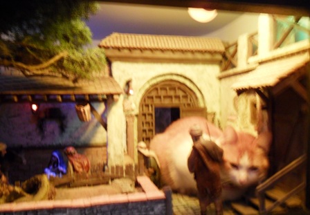 Mis sobrinos tuvieron un gato que durmió toda una Navidad en el Nacimiento que les hice (hace ya veinte años o más), enroscado al lado del Misterio ... pero no rompió absolutamente nada.