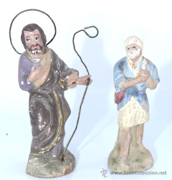 Ejem... no tienen dos siglos... igual no tienen ni treinta años... lo que pasa es que los vendedores adjudican la antigüedad al tun tun y si cuela... el pato y la oveja no valen el esfuerzo de tirarlos a la basura, y en cuanto a las figuras... son dos birrias, tanto por lo mal hechas como por lo deterioradas. Pensar que yo tengo cajas y cajas de figuras mejores que no me atrevo a ofrecer a dos y tres euros la pieza....