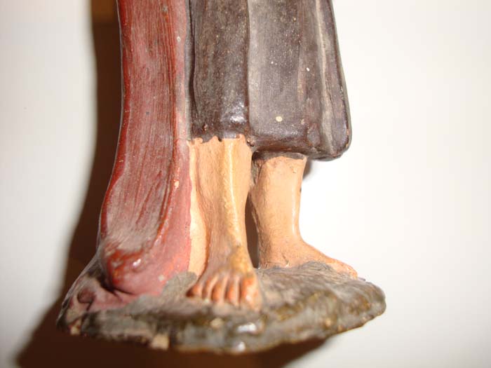 El modelado es muy bueno, la pintura ya no tanto pero para la edad que le estimo casi 100 años esta bastante bien conservada. Mide13 cm. justos que si estuviese plantada seria de 14, encaja con el estilo del pastor arrodillado de Antoni.