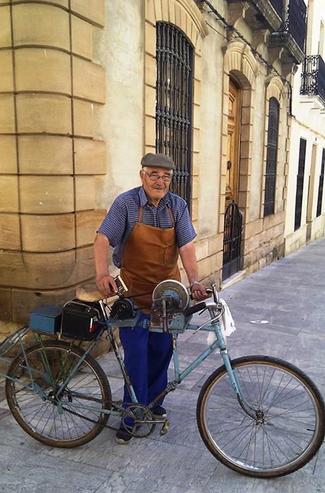 El afilador, con esa bicicleta maravillosa que era a la vez vehículo y herramienta de trabajo. Y, naturalmente, con el "chiflo" con cuyas escalas ascendentes y descendentes anunciaban su presencia y llamaban a la clientela.