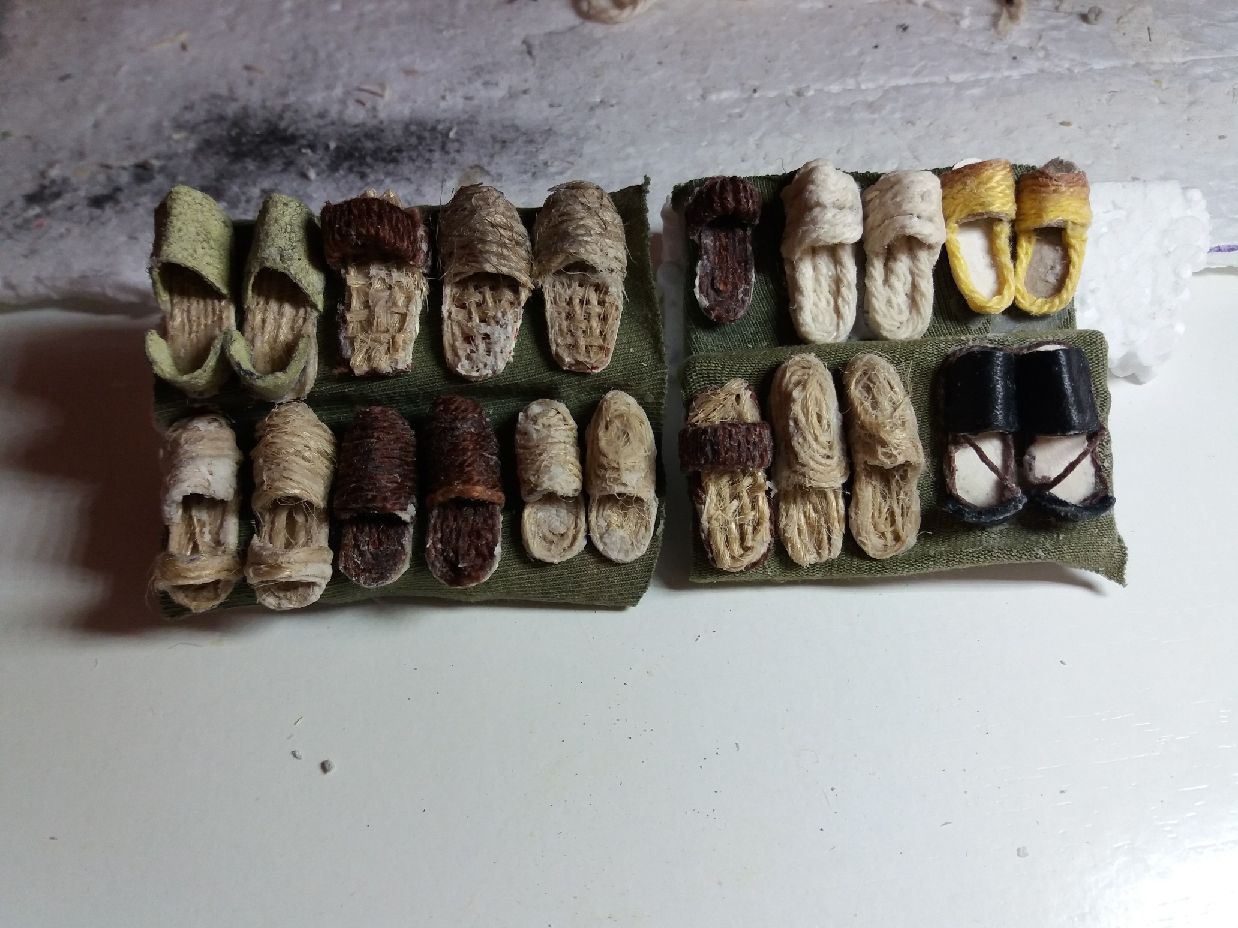 Es la primera vez que escribo aquí y me hace muy feliz compartir con vosotros mis primeros trabajos. En esta ocasión son unas alpargatas que me he atrevido a hacer y las cuales vi a uno de los maestros del belenismo. Espero que os gusten.