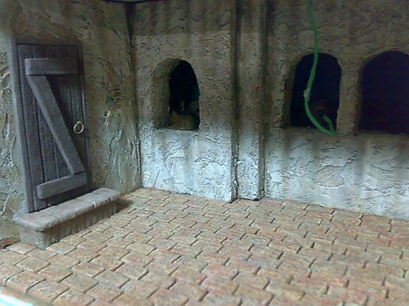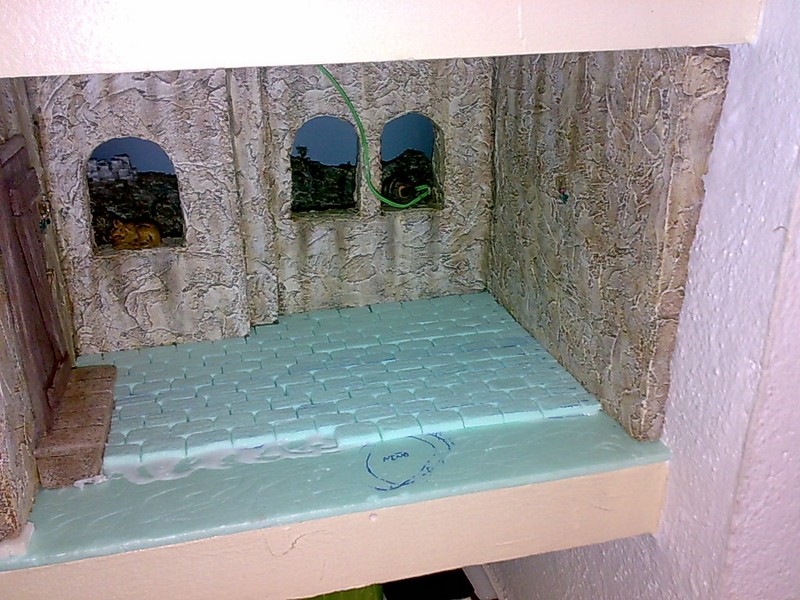 Malvisa, la realización es sencilla pero de buen acabado, las montañas las hize de porex de bolitas y con el soldador fuí haciendo hendiduras y diferentes formas y luego dí una capa de escayola y la pinté usando la misma tecnica del suelo solo que al tener muchas hendiduras las veladuras no penetran y queda ese efecto rocoso, saludos.