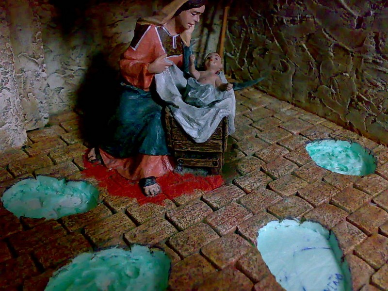 Hola Gilda,a ver para tapar las peanas simplemente utilizo plastilina de toda la vida, una vez tapada la peana empiezo a modelar la plastilina utilizando diversas herramientas, por ejemplo un cutter, un palillo, una aguja, ect, y intento imitar el suelo (aqui hace falta paciencia de casi una hora para cada peana) y luego aplico la misma tecnica que el pintado del suelo, empiezo con la base, rojo, ocre y blanco, todo esto realizando casi 10 veladuras, en fin mucha paciencia, saludos
