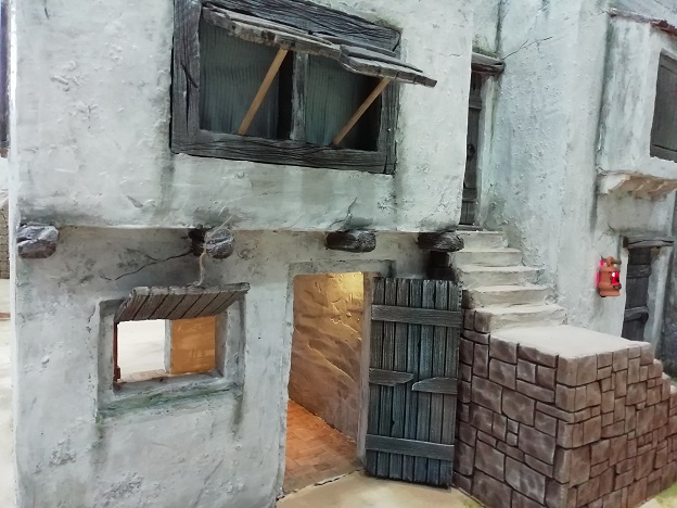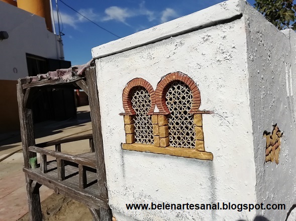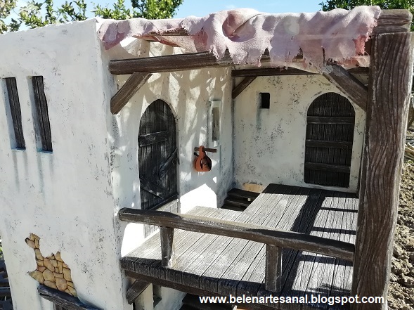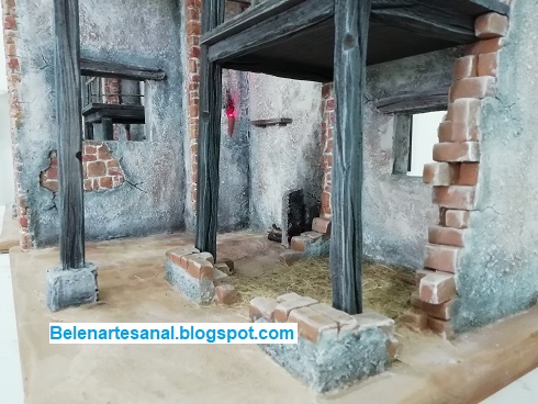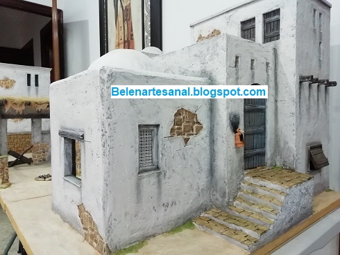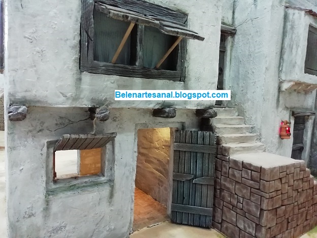 Nuevo "caserío" para el Belén, casa de 2 plantas con escaleras de madera y parte inferior con pesebre.