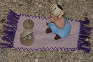 Pero con todo esto del reciclado hay que tener mucho cuidado pues de la "Operación Trapero" inicial en la que empezamos a guardar todo tipo de artlúgios,enseres, cachibaches etc etc, se pasa al "Sindrome de Diógenes en versión belenista", en el que no nos dá ningun reparo en recolectar más y más cosas de entre las basuras, siempre pensando en que "ya me serviran para algo" y claro cuando tu mujer o pareja descubre el alijo que con tanto cariño has recolectado pensando en futuros y magníficos belenes,se suele armar el gran lio,volviendo a retornar a las basuras gran parte de lo que de ellas nunca debio salir.