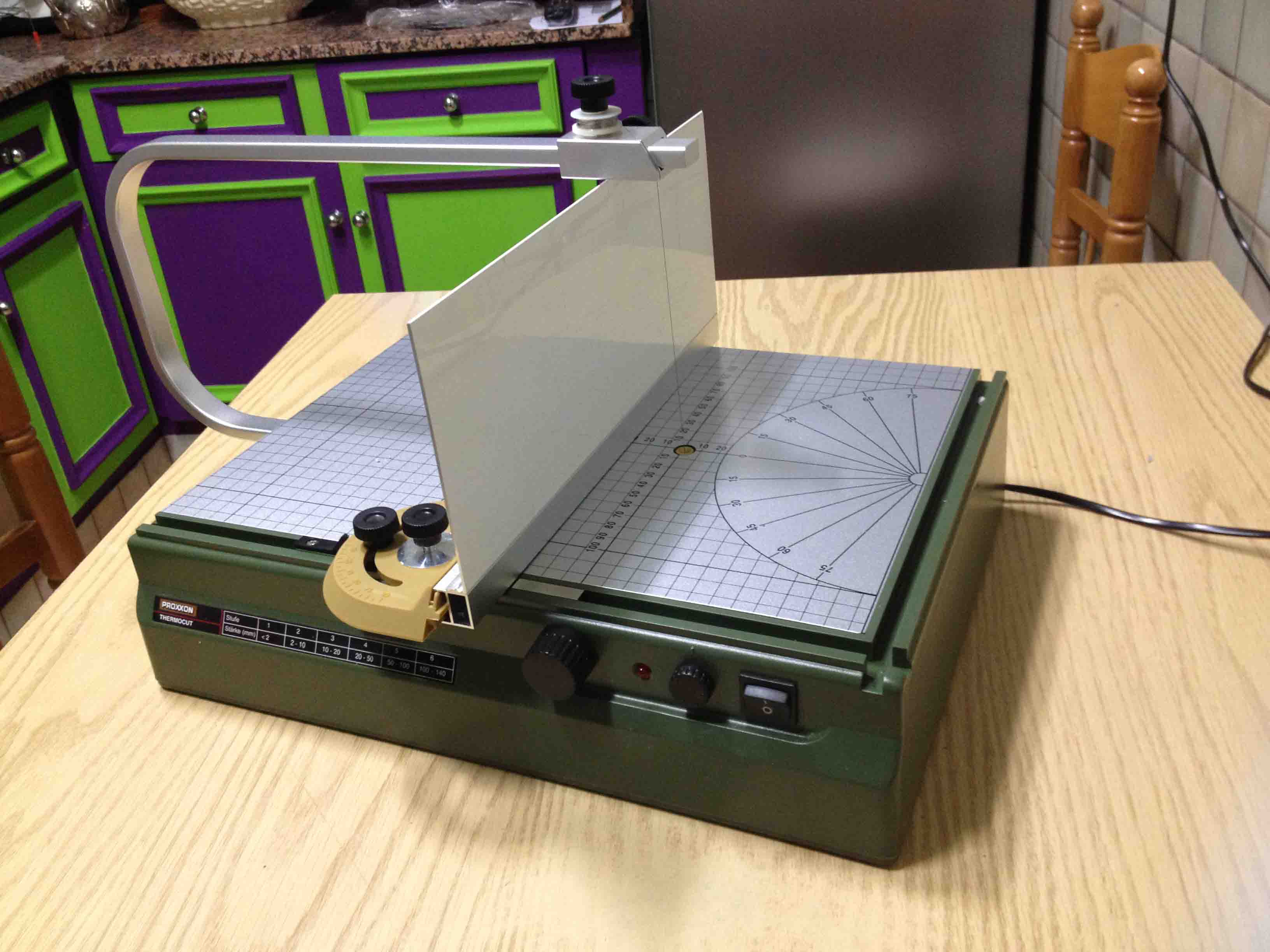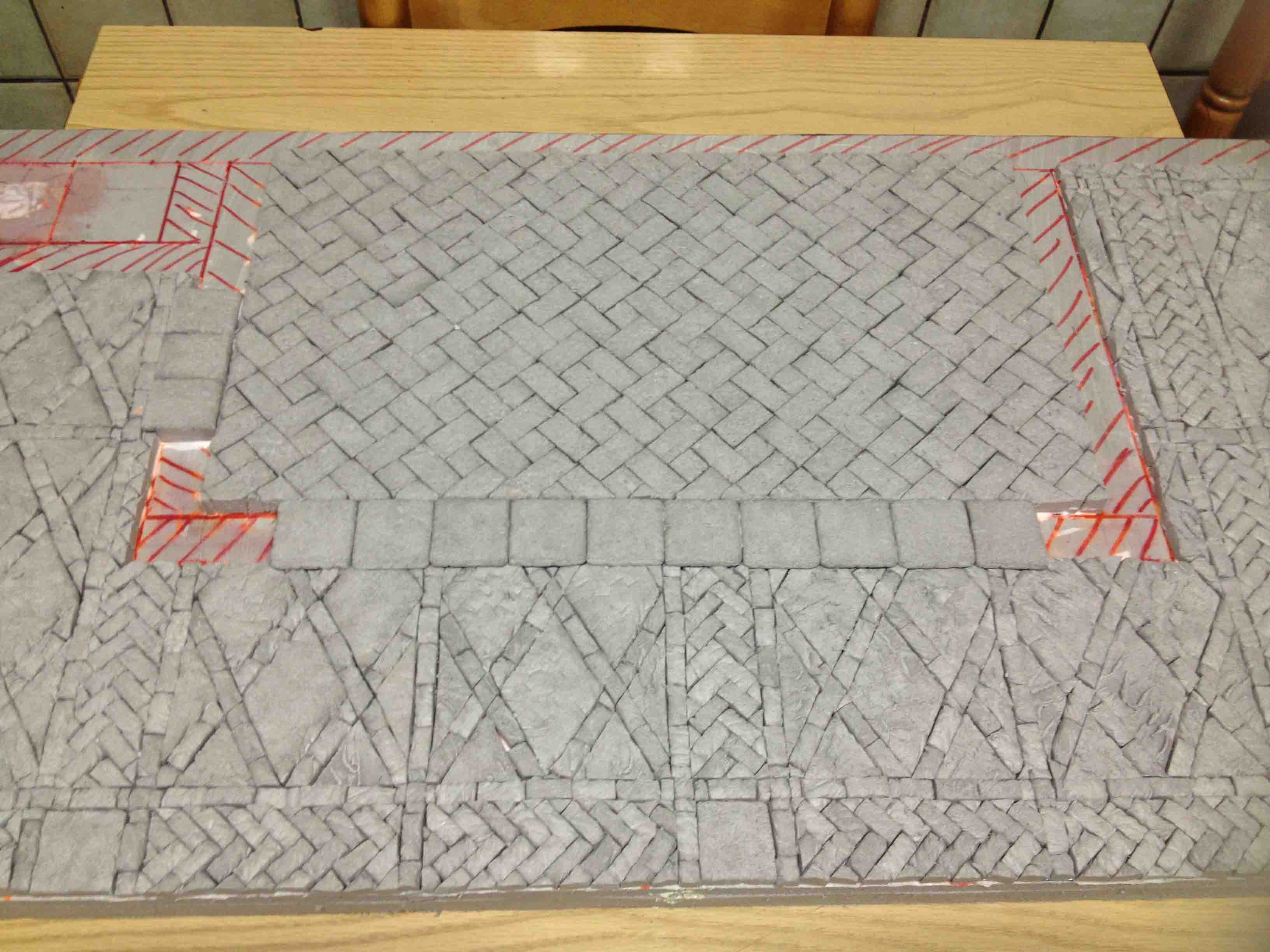IMG_3627.jpg (225KB - 216 descargas)Ayer me decidí a comprar la Proxxon, para cortar poliestireno. Hoy la he estado probando y la verdad que estoy contento. Si que es verdad que su reducido tamaño te limita a la hora de hacer cosas de tamaño grande, como laminar una plancha grande en varias capas, pero para hacer detalles pequeños, como adoquines, ladrillos o elementos arquitectónicos, va de lujo. No obstante le he hecho un pequeño tunning: le he añadido sobre la guía metálica que trae, una lámina de aluminio para tener un buen apoyo a la hora de cortar elementos verticales. Os cuelgo las fotos por si sirve de ayuda. Me lo han hecho en un taller de aluminios y me ha costado 5 eurillos. También os pongo unas fotos del suelo de mi portal, que ya está totalmente terminado en lo que es pavimentación. Ahora ya puedo empezar a levantar tabiques !!