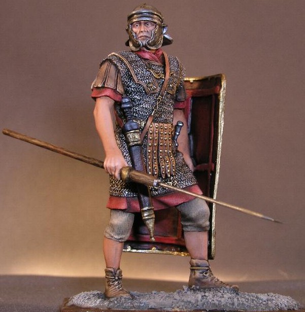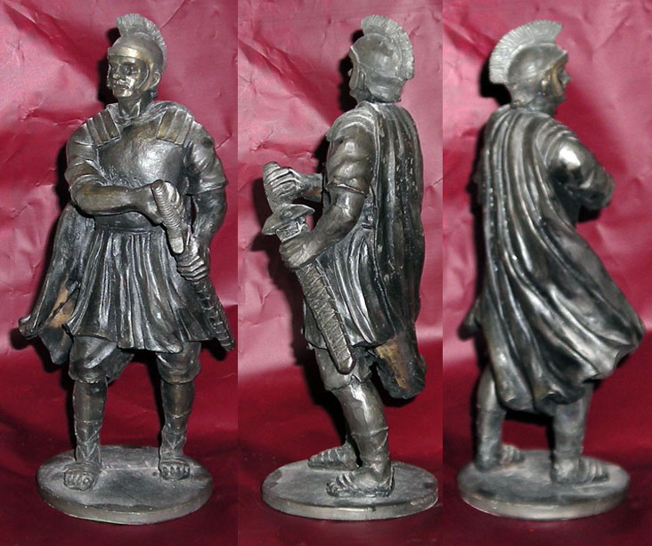 Rebuscando entre mis trastos he encontrado este romano de resina, se puede decir del todo a cien, mide 15 cmts. y cuando lo pinte puede dar el pego, aunque lo encuentro en aptitud un poco belica -podria servir para un diorama de pasion- ahi va la misma figura tomada en tres angulos distintos.