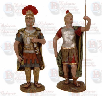 Al igual que algunas piezas de años pasados, las hemos comprado en Belenes Chirivella (una casa que para mí, que llevo trabajando con ella 5 años ya, es seria y formal, a la par que amable con sus cilentes). Son dos romanos realizados en resina entelada. El tamaño que hemos adquirido es el de 15cm. La idea es colocarlos en el mercado, junto con otras figuras.