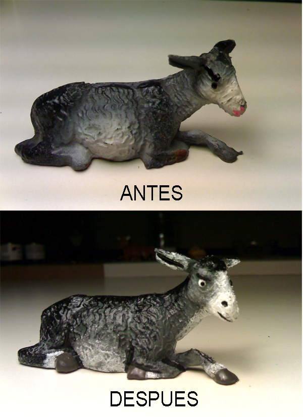 MULA copia.jpg (151KB - 480 descargas)Si me lo permites, te diria que yo particularmente cambiaria el pintado del ojo, ya que a los burros a pena se le ve blanco casi todo el ojo lo abarca la pupila y tampoco tienen ceja, pintado asi le da una sensación extraña a la cara, pero es mi opinion si te gusta asi u originalmente era asi pues me parece perfecto como está pintado. Un saludo