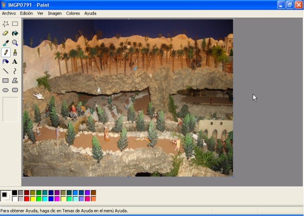 Pinchar menú "Archivo" y "abrir..." seleccionar el directorio donde esté la foto, cuando la tengamos en el escritorio de paint estará grande, pinchar en el menú "Imagen" y despues en "Expandir y contraer", aqui bajamos el porcentaje por igual, dependiendo del tamaño podemos ver el resultado final, que ya encaja en el fondo del paint, podemos hacerlo varias veces hasta que consigamos el tamaño apropiado, si nos equivocamos podemos hacer marcha atras, para ello presionamos la tecla Ctrl y Z a la vez, con esto desacemos la ultima operación.