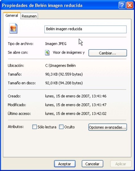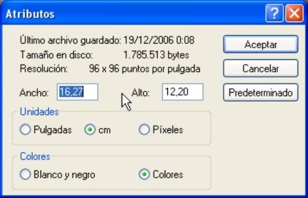 Menú "Archivo" "Atributos" asi vemos las dimensiones que tiene despues de la reducción, tambien se puede mirar antes asi vemos el % que debemos reducir.