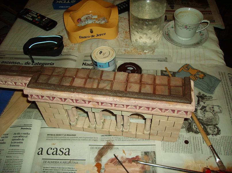 Bueno, pues os pongo una serie de fotos en las que se ve paso a paso el proceso de pintado de la pared interior de la sinagoga, la que va tras los arcos de encima de la puerta. Espero que os sirva para comprender mejor el proceso de pintura que yo hago. también os dejo cómo he pintado las baldosas de la azotea de la sinagoga