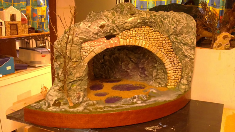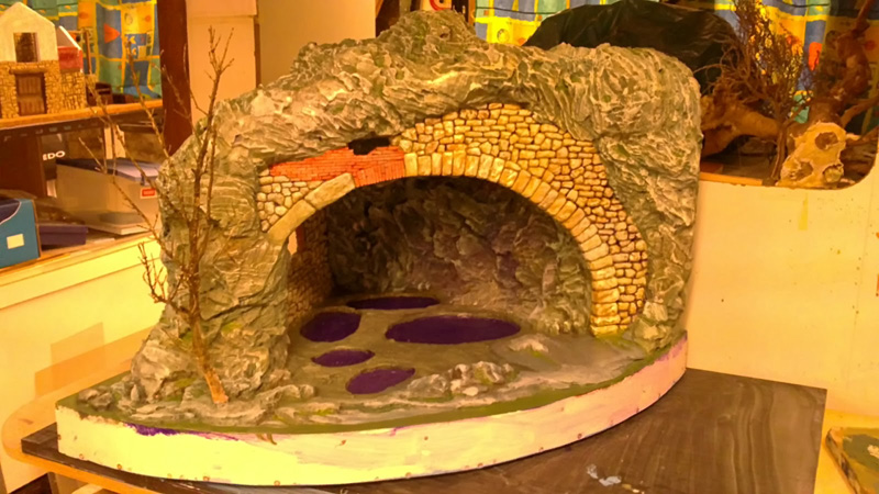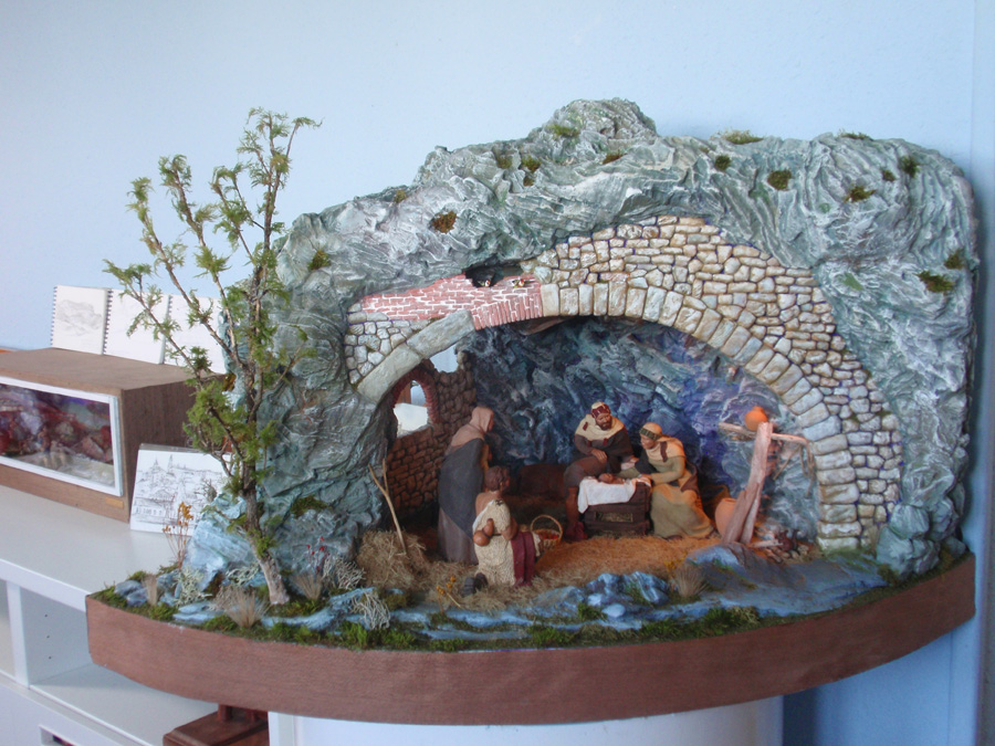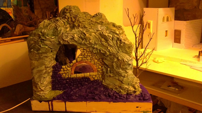 La tarea ha consistido, en la transformación de la gruta del diorama del 2007, en un belén abierto