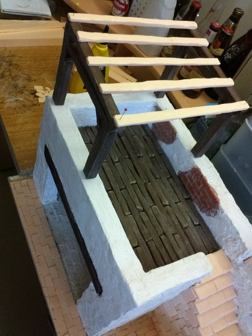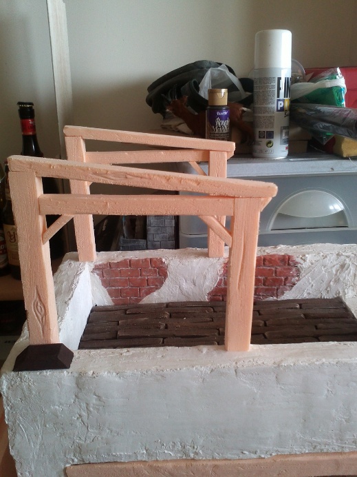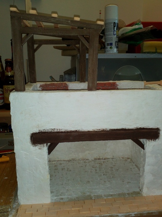 Le doy el color deseado al pórex a falta de tener terminada toda la estructura. Según vea el conjunto de la maderá se retocará un poco o se dejará tal cual está.