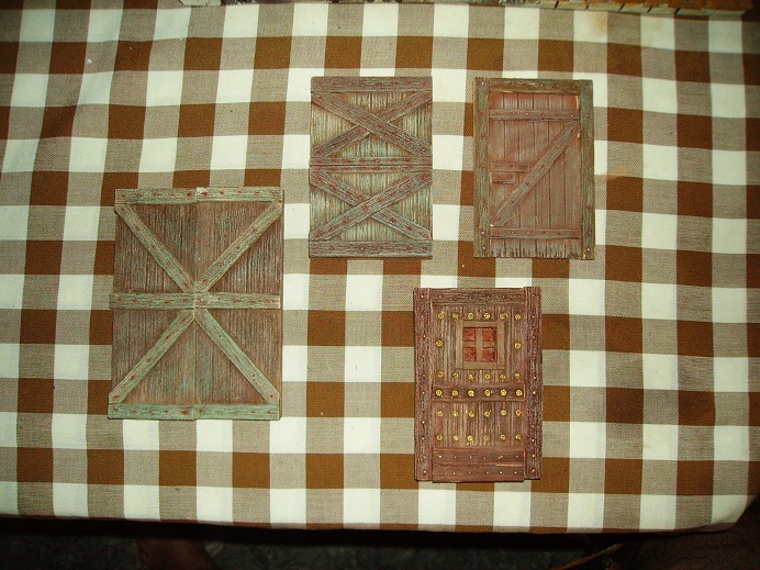 Bueno, pues a falta de terminar con la pintura, me he puesto a hacer puertas para sustituir a las originales de los edificios de la calle trasera,donde va la tienda del mercader de antigüedades, y viendo los resultados me pondré a cambiar tambien las de las casas que ya hice el año pasado. Me ha gustado mucho como me ha nquedado haciendolas de madera, y estoy procurando que no haya dos puertas iguales, por lo que me estoy fijando en todas las puertas que veo en el foro para tratar de coger ideas. Si me podeis ayudar, os estaría muy agradecido.