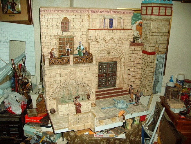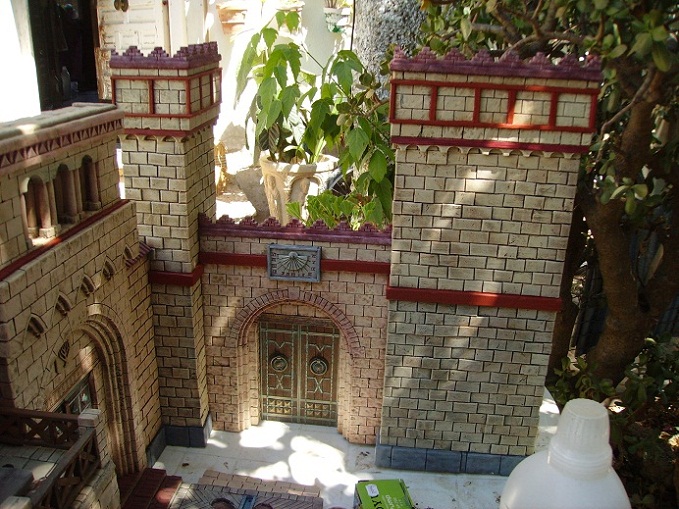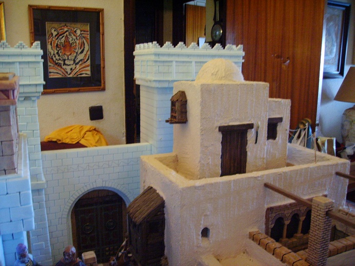Os dejo unas fotos que hice ayer para ver cómo quedaba con la puerta y las dos torres. Le he puesto algunas figuras y algunas tinajas para que el efecto fuera un poco más realista.