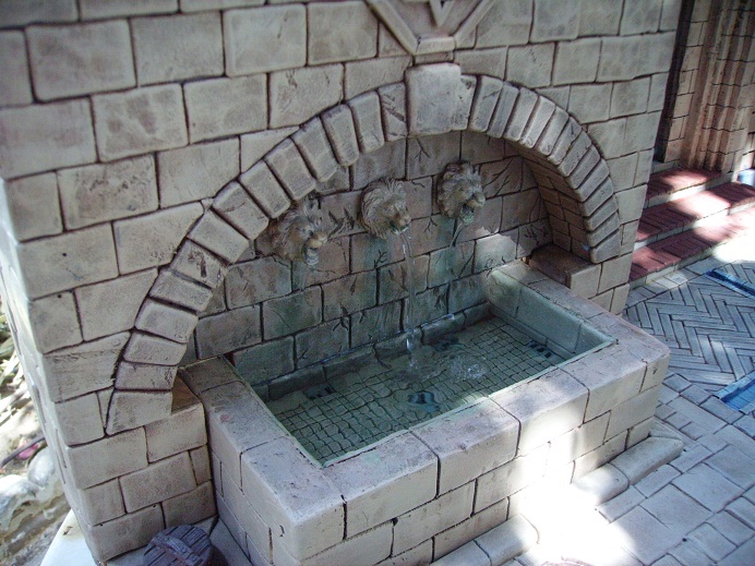Bueno, os dejo las fotos de las pruebas que he hecho con la fuente en funcionamiento. De momento solo he probado la de los tres leones. mas adelante probaré la fuente azul. De momento bien, salvo que he descubierto una peña fuga de agua que aún estoy a tiempo de subsanar. También os dejo dos fotos del templo y la puerta a la luz del sol. Espero que os guste. Además, no sé si saldrá, pero voy a intentar poner un video de la fuente en funcionamiento