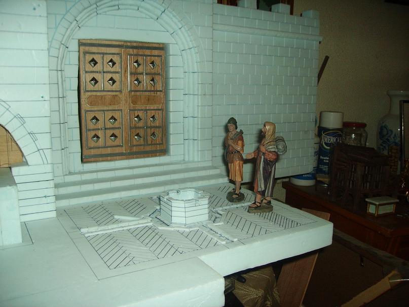 Bueno, pues os dejo fotos de como va la reforma, en este caso la nueva construcción, la sinagoga. He hecho una especie de terraza sobre la fuente, donde pondré a los sabios discutiendo, y sobre la puerta principal he habierto un gran ventanal con arcos y columnas. Espero que os guste, y como siempre espero vuestros comentarios.