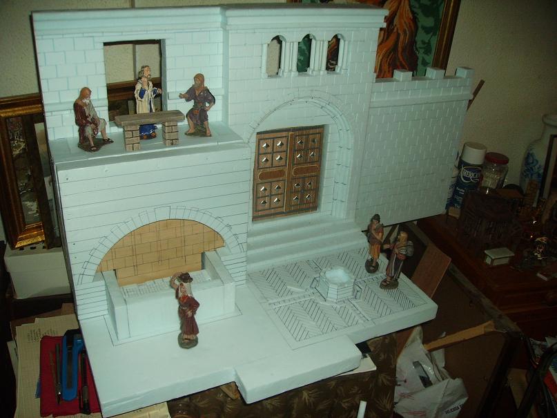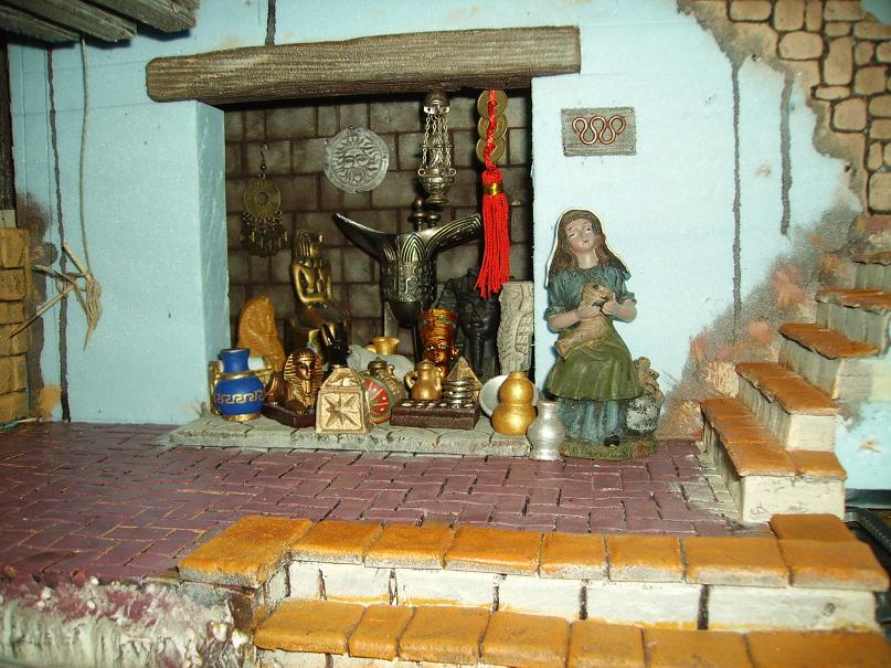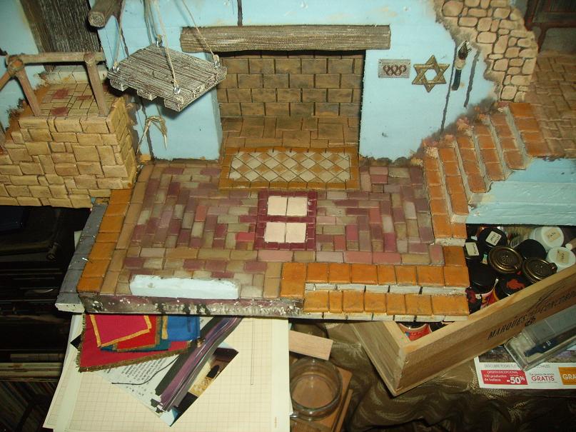 Lo primero que hago al pintar es dar una mano de pintura oscura, negro o marrón; hay gente que la primera mano se la da de color gris. Después, a partir de ahí, cada uno es libre de dar los colores que crea convenientes. Yo voy aplicando de más oscuro a más claro. La gama de colores que empleo siempre es de marrones, desde el más oscuro al más claro: siena, terracota, teja, tabaco, chocolate, canela, calabaza... Después, para algunos detalles, como el de los ladrillos que están junto a la polea, he empleado una gama de colores rojizos, como el grana, el bermellón, y para los más claros he empleado un rosa, aplicándolo a pincel seco.