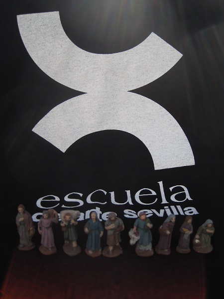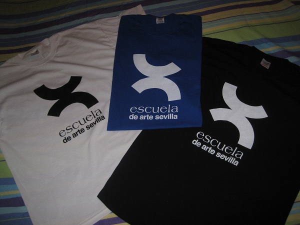 Las camisetas llevan el nuevo símbolo de la escuela de artes de Sevilla, un logotipo que refleja la adaptación a los nuevos tiempos. Dichas camisetas las hay en diferentes colores como blancas, azules, rojas y negras así como de las tallas: S, M, L y XL. El precio de estas es de 12€ y con la compra de esta camiseta te llevas por la patilla una figura de 3 cm hecha en arcilla y policromada a mano por el que les habla.