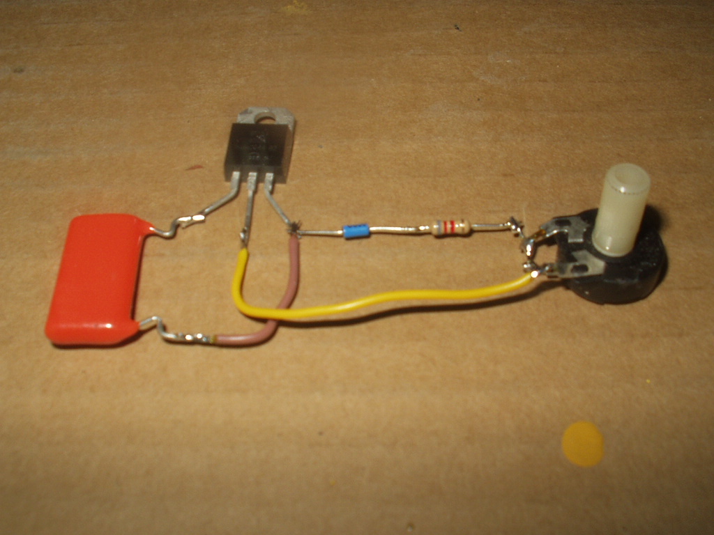 foto 7 triac condensador diac resistencia y potenciometro y coneccion entre condensador diac potenciometro y cable de salida